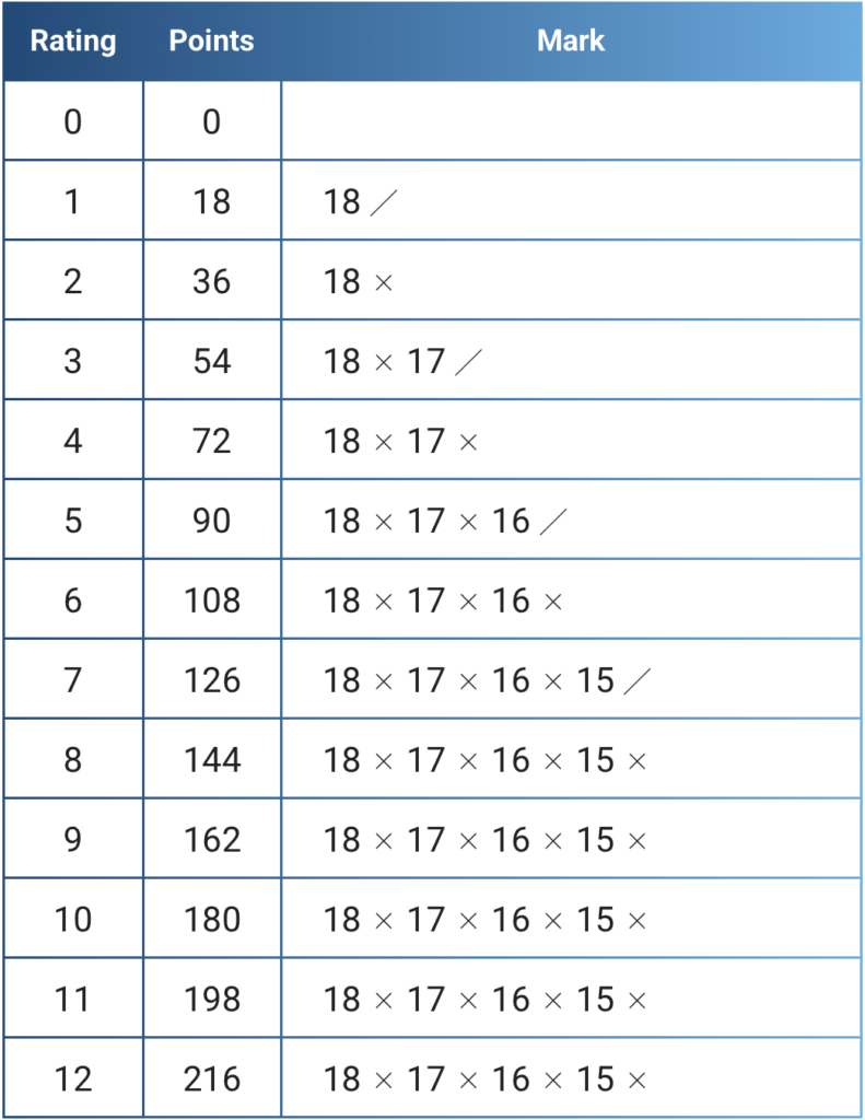 1 difference level(RT) for 18 pts, the upper limit of difference levels for 01 Games is 12.